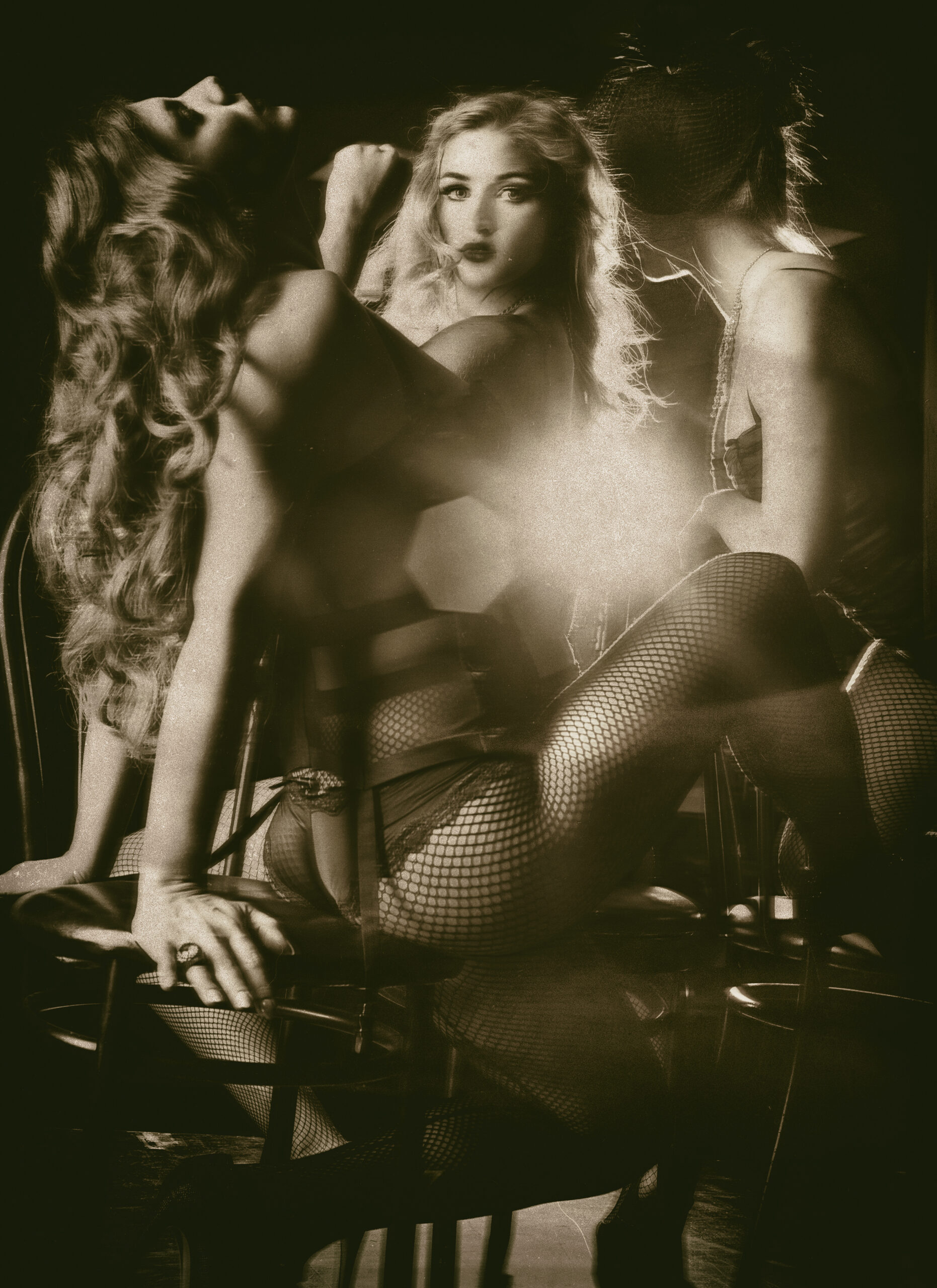 Just as the artistic impressionists, Edgar Degas and Toulouse Lautrec welcomed you into a voyeuristic world of excitement, these images tantalize you with sultry performers and ladies of the night taking you for a ride with their soft curves and intense stares. This series, possesses a nostalgic feeling of the place you have unknowingly longed for: a world full of raw energy that beckons you into the dark, shadows of the night, speak easies, cabarets and dance halls of Paris. With a hint of Golden Age and Belle Epoque, the scantily dressed performers consume and intoxicate you with unattainable fantasies.